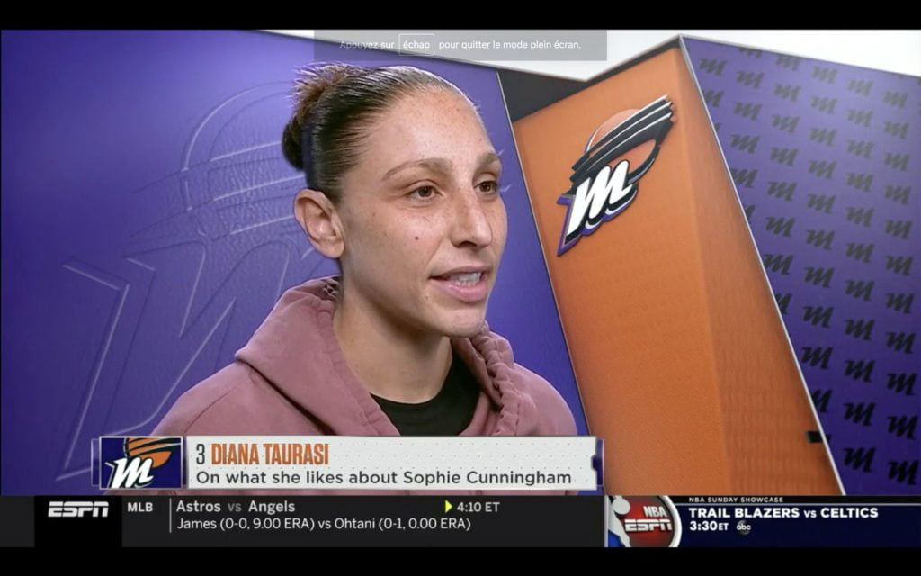 Phoenix a commencé à gagner, New York a perdu Sabrina Ionescu. En une phrase, voilà l’ambiance du match de ce soir. Les nouvelles de l’entorse du choix numéro 1 de la draft ne sont pas bonnes : entorse de stade 3, ligaments touchés, il est bien possible que Sabrina Ionescu ne refoule plus un parquet de WNBA cette saison. Face à une équipe bâtie autour d’un Big 3 costaud comme il faut, ça va sans doute faire très mal pour New York. Surtout que la légende dit que Diana Taurasi mange 3 rookies à chaque repas… Sauf les siennes, comme l’a sympathiquement rappelé DeWanna Bonner.