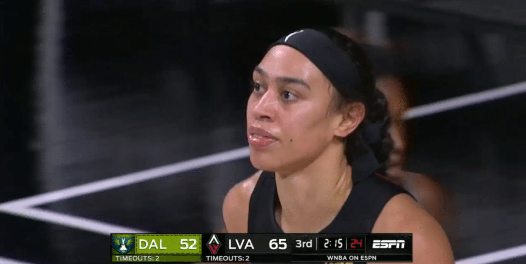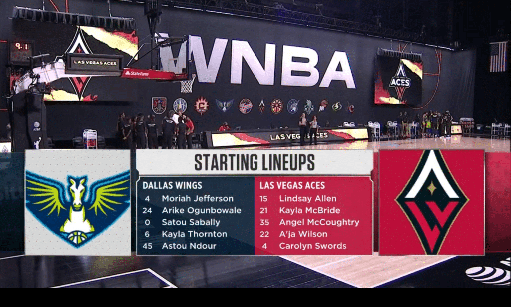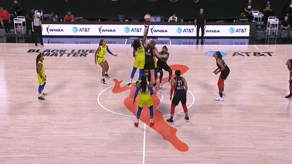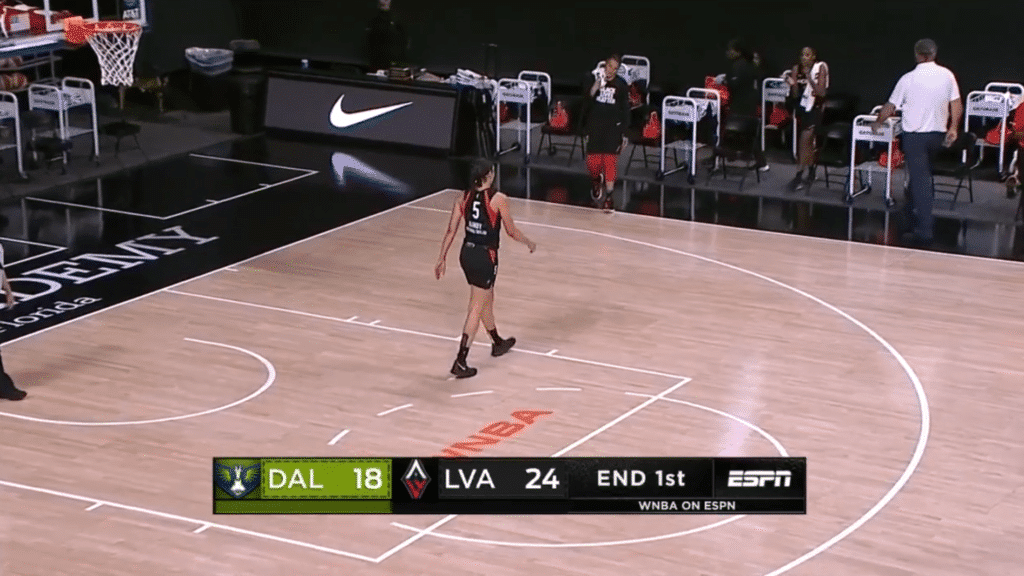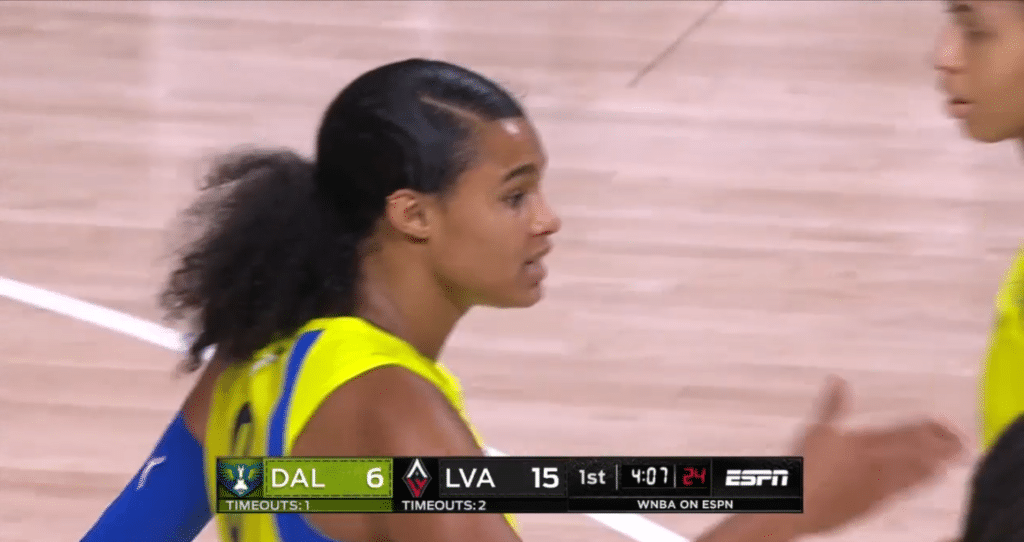 Le premier quart-temps début clairement à l’avantage de Las Vegas. Dallas en face est maladroit et n’arrive pas à trouver le cercle. Les layups et tirs ouverts manqués s’enchaînent. Sur un 3 points plein de sang froid de Kayla McBride, les Aces ponctuent un joli 9-0 pour débuter et coach Agler demande un temps-mort.