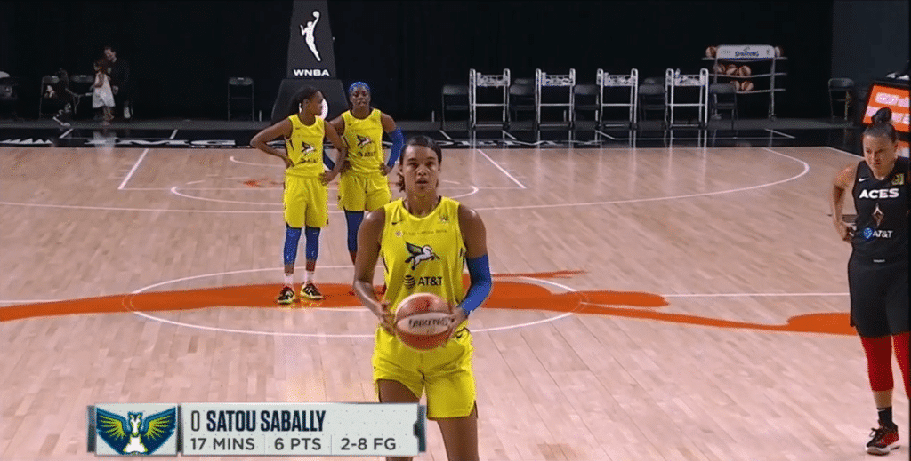 Dallas va alors se reprendre et petit à petit réussir à rester dans le match grâce, entre autres, à une belle activité de Satou Sabally mais également quelques balles perdues malheureuses côté Aces. Score en sortie de 1er quart : 24-18 à l’avantage de Vegas.