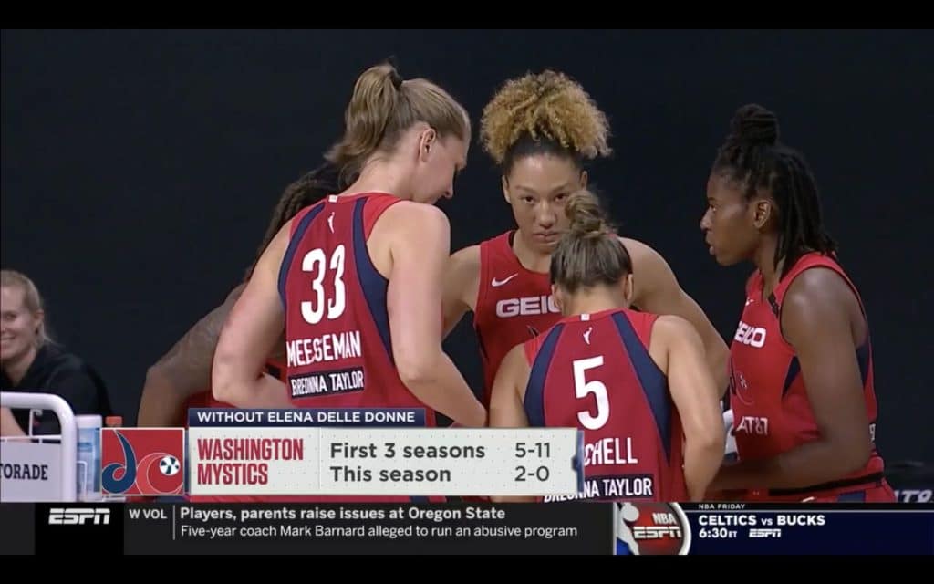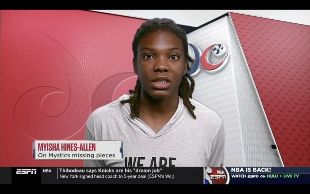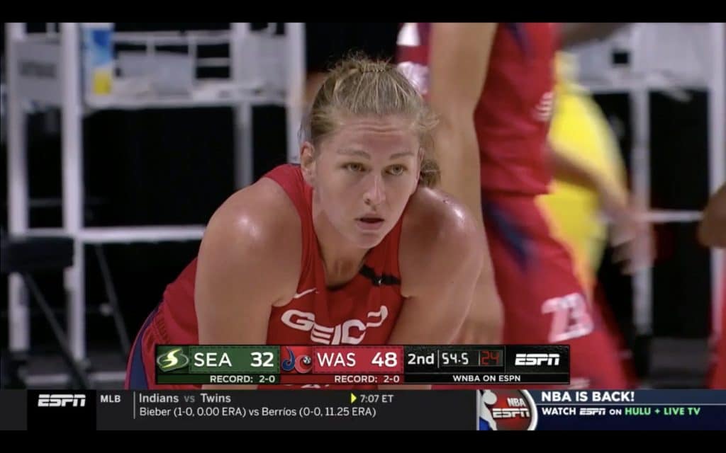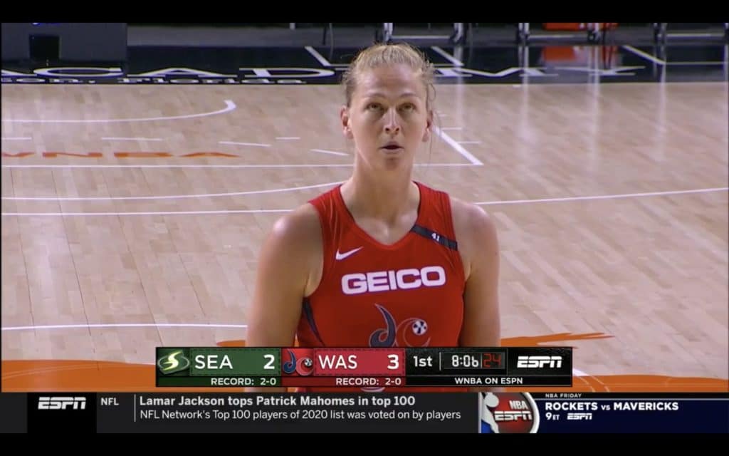 Emma Meesseman a livré une prestation très solide avec 10 points, 5 rebonds, 4 assists et 3 interceptions. Si elle n’affiche pas le même scoring que lors des derniers playoffs, c’est tout simplement parce que le besoin ne s’en fait pas sentir et Emma est tout sauf une forceuse. Cette nuit, Ariel Atkins et Myisha Hines-Allen se sont chargées de noircir la feuille des points et c’est à nouveau une prestation collective époustouflante que les Mystics nous ont offert, les 25 assists pour preuve.