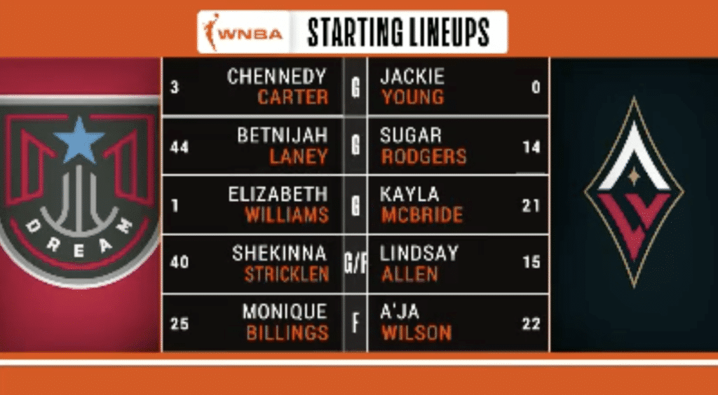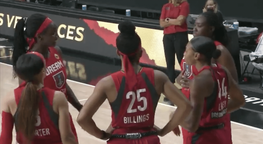 La tendance du match se confirme tout simplement au cours du troisième quart-temps. Les efforts combinés d’une Élizabeth Williams en grande forme et d’une Blake Dietrick qui cherche à battre la mesure pour son équipe ne suffisent pas face à des Aces en réussite. Résultat, l’écart n’a en rien été réduit à la fin du troisième quart-temps, et le Dream est mené 54-77.