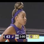 Du côté d’Atlanta, c’est la très entreprenante Chennedy Carter qui mène la danse. La rookie-sensation attaque le cercle et provoque des fautes à tout va. Elle n’a pas froid aux yeux, et malgré sa taille moyenne, elle n’hésite pas à finir dans la raquette, même face à deux défenseurs ! Avec dix points lors du premier quart-temps, elle mène son équipe d’une main de maître, et permet au Dream de revenir à deux points de son adversaire (18-20) à une minute trente de la fin du quart-temps.