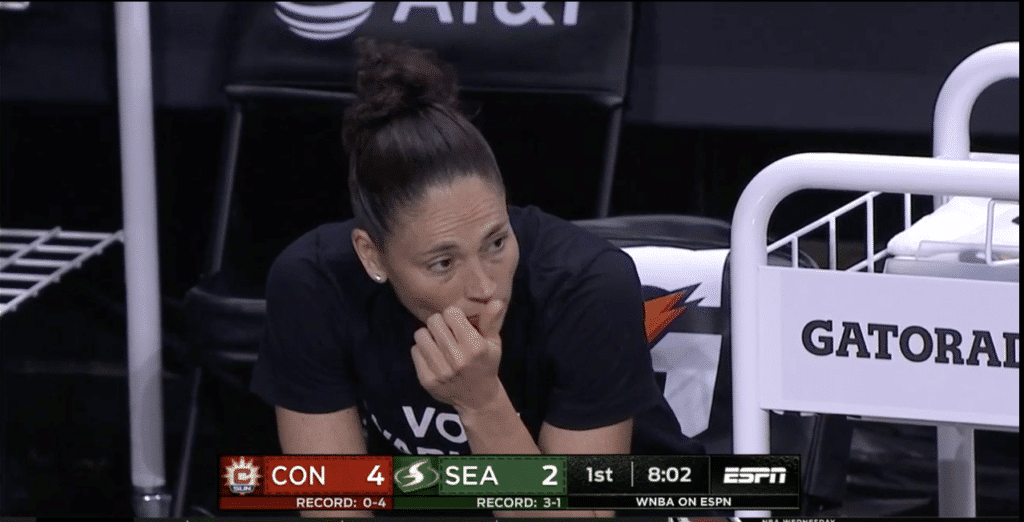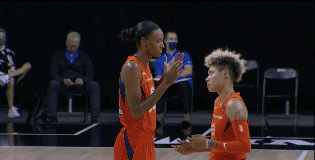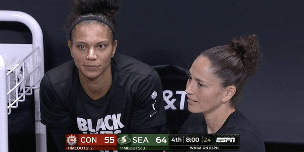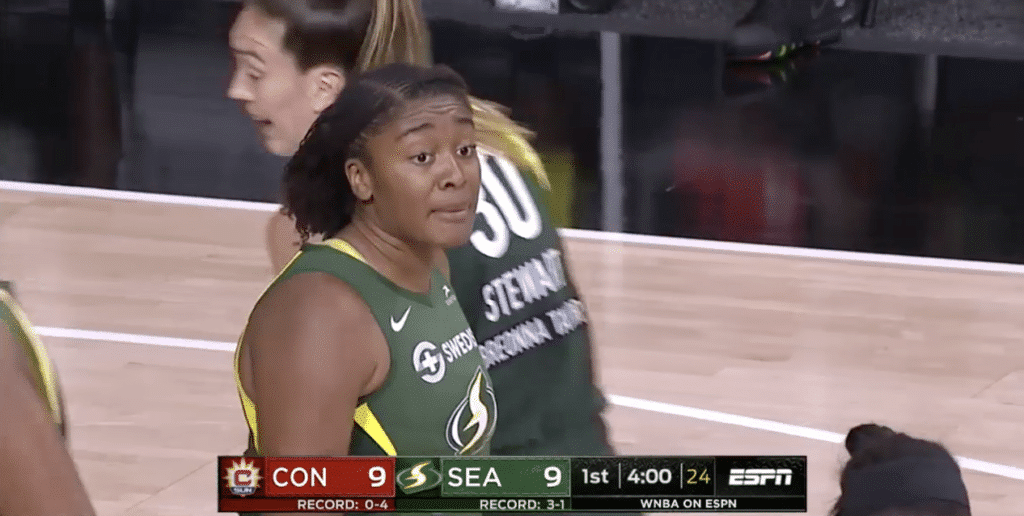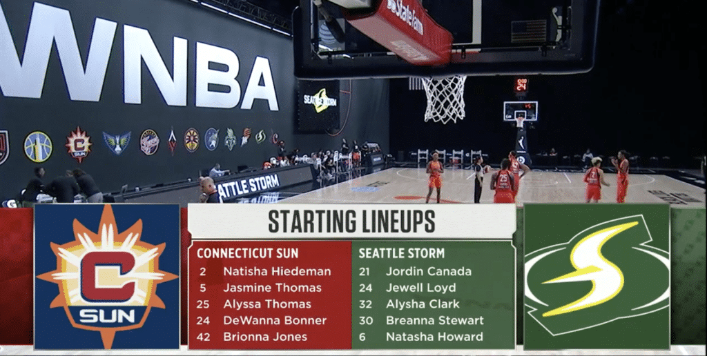 Le dernier match de la nuit opposait deux équipes que l’on imaginait pouvoir prétendre au titre cette année : le Seattle Storm, finaliste et champion 2018, et le Connecticut Sun, finaliste 2019. Mais si le début de saison du Storm et le retour tonitruant de Breanna Stewart, un an après sa rupture du tendon d’Achille, ont confirmé le statut de contender du Storm, la surprise se trouve du côté de Connecticut puisque l’équipe de Curt Miller, pourtant riche en joueuses d’expérience, est tenue en échec depuis le début de la saison et a pour l’heure le même bilan catastrophique que New-York et sa palanquée de rookies. Malgré un match très disputé pendant un temps, le Sun finit malheureusement par craquer une fois encore face à une équipe du Storm en grande forme en dépit des absences de Sue Bird, au repos suite à une douleur au genoux, et d’Epiphanny Prince, qui a dû quitter la Wubble pour des raisons personnelles.