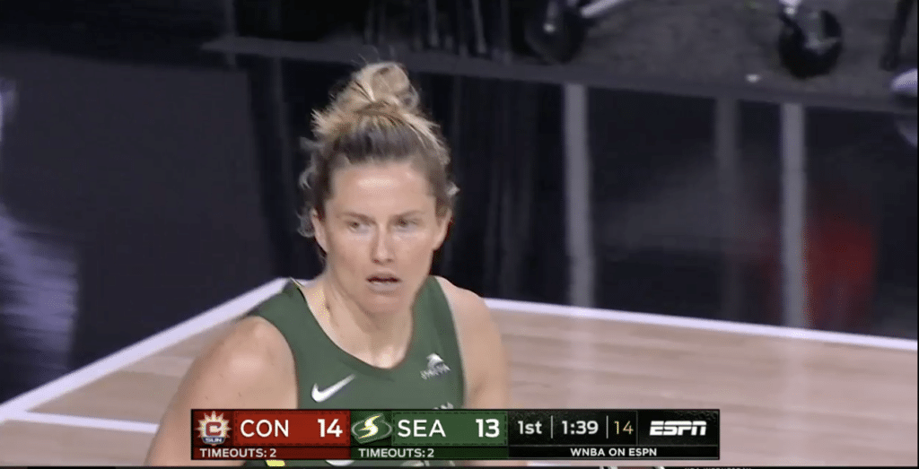 Pour débuter le deuxième quart-temps, c’est Howard qui marque dans la raquette pour le Storm, suivie par une Jordin Canada qui se ballade tranquillement en coast-to-coast. L’énergie déployée par la jeune meneuse de Seattle est impresionnante : présente au rebond comme sur toutes les lignes de passe, elle n’avait pas hésité pas à se laisser rentrer dedans par Alyssa Thomas lors du premier quart-temps. Jordin trouve de l’adresse à mi-distance, mais pénétre également dans la raquette où elle parvient à servir la rookie Ezi Magbebor au moment opportun. C’est là le futur du Storm qui s’illustre !