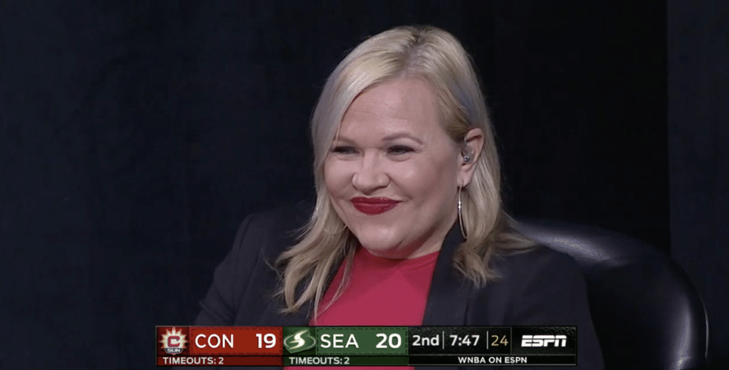 Connecticut et Seattle ne se lâchent pas et jouent au chat et à la souris. Sami Whitcomb trouve de l’adresse à trois points, puis Stewart provoque le and-one et inflige un contre violent à Jazmine Thomas de l’autre côté du terrain. La réponse de Connecticut est toutefois immédiate, puisque Bonner artille à trois points. Alyssa Thomas rate un lay-up ouvert à quelques secondes de la mi-temps, mais Jasmine Thomas, servie in extremis par Kaleena Misqueda-Lewis, marque un trois points décisif au buzzer pour le Sun. Après vingt-minutes de jeu, le Sun rentre au vestiaire avec deux points d’avance (40-38).