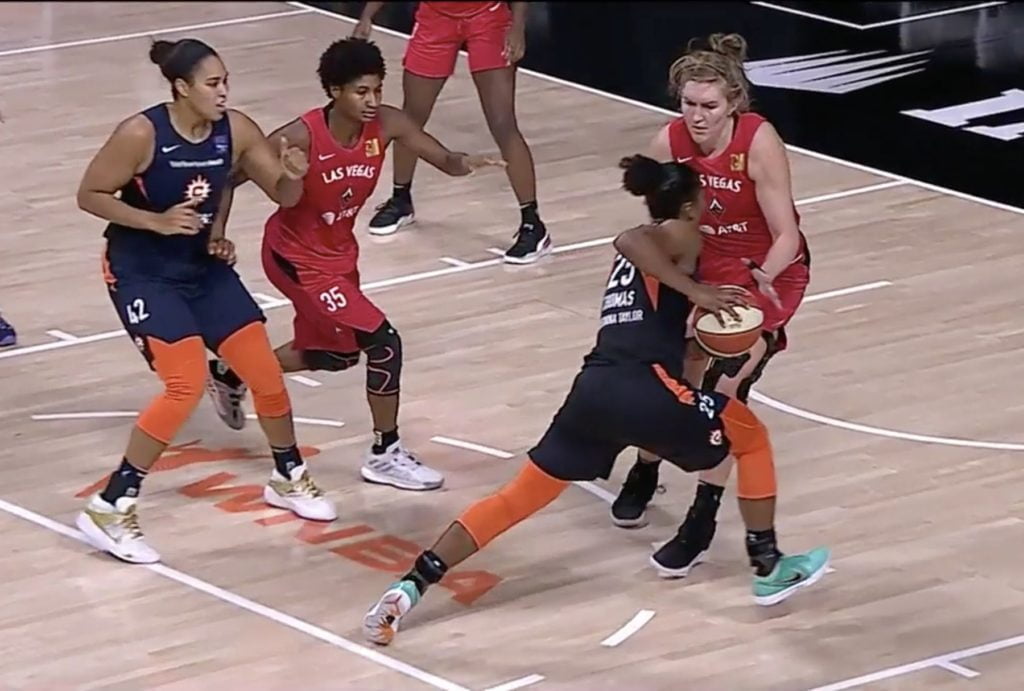Game 4 et Connecticut n’est déjà plus qu’à une victoire d’une seconde finale d’affilée. Las Vegas a le dos au mur et une tuile à gérer : Dearica Hamby, double tenante du trophée de meilleure 6ème joueuse, est blessée au genou. Elle ne jouera pas ce soir et Bill Laimbeer craint même que sa saison soit finie s’il devait y avoir une suite pour Las Vegas. Du côté de Connecticut, Alyssa Thomas n’a toujours qu’une épaule mais elle est là, bien évidemment.