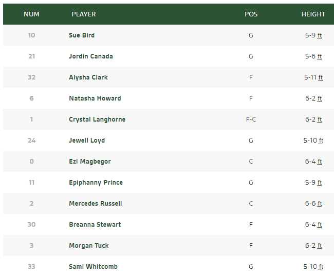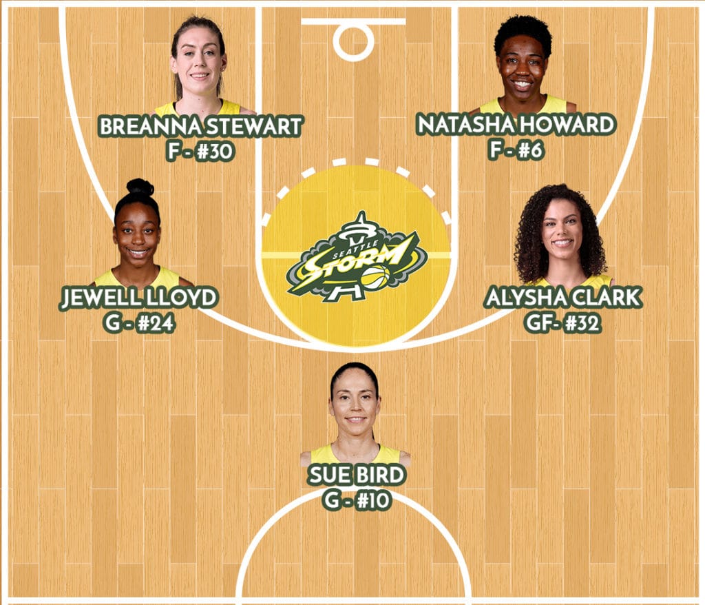 Avec le retour de Sue Bird et Breanna Stewart, et en espérant que tout le monde arrive en forme, peu de questions semblent se poser quant au 5 majeur. En gros, il s’agit des titulaires championnes en 2018. Une seule interrogation pourrait subsister. Au vu de se très bonne saison 2019, pourrait-on envisager de voir Jordin Canada titulaire à la mène pour essayer de ménager Sue Bird et la garder en pleine forme pour les playoffs ?