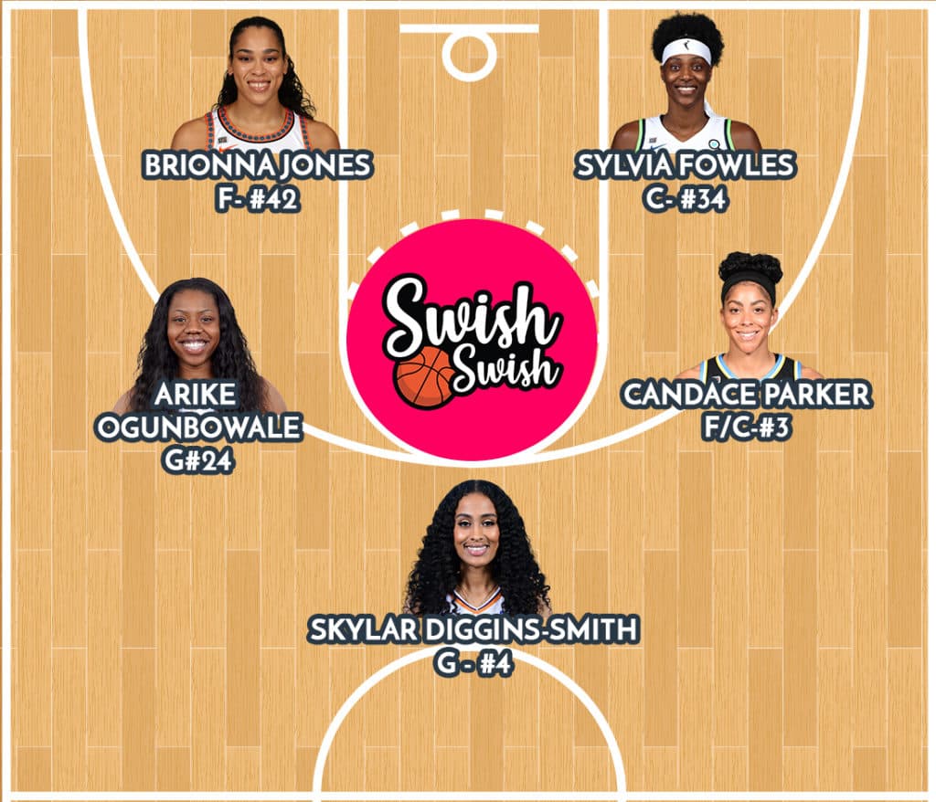 - Sylvia Fowles (Lynx) : Quand vous marquez l’histoire, vous méritez votre place dans ce cinq. Sylvia domine et avec elle, le Lynx gagne.