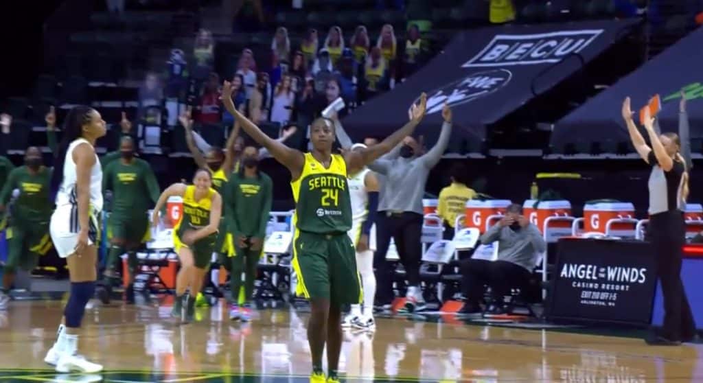 A une seconde du buzzer, donc, Jewell Loyd (25 points, 7 passes) a décidé que la soirée ne devait pas s’éterniser davantage. Seattle et Dallas avaient déjà prolongé un peu le plaisir en overtime, après un gros shoot de Satou Sabally (18 points), à peine revenue des qualifications pour le Tournoi Olympique avec l’Allemagne en 3×3. Alors que l’on se dirigeait vers une deuxième prolongation et que les jambes commençaient à devenir lourdes de part et d’autre, l’usual suspect a délivré la sentence. Une remise en jeu effectuée par l’excellente Stephanie Talbot, (21 points à 4/5 à 3 points) un catch and shoot sur une trajectoire en arc en ciel à un mètre derrière l’arc de cercle et… BANG ! Une issue déchirante pour les Wings, qui menaient de 10 points dans le 4e quart-temps, et incroyablement bonne pour le moral du Storm, qui continue de trouver le moyen de gagner sans la même assise défensive qu’en 2020.