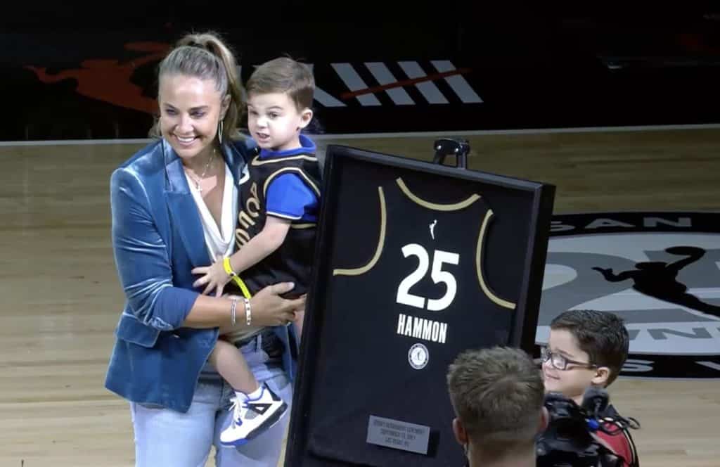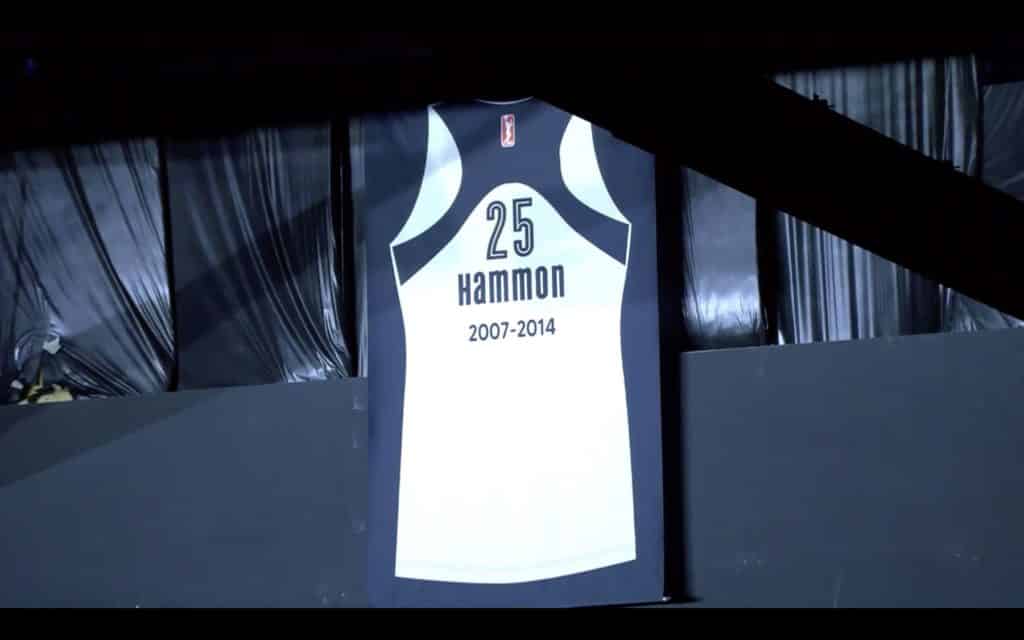 Les Wings n’avaient pas de réels enjeux dans ce match. Pour les Aces, une victoire leur permettait de sécuriser leur seconde place, bien au chaud derrière le Connecticut Sun. Il n’empêche, c’est toujours un plaisir de voir jouer la meilleure équipe offensive de la ligue face aux jeunes qui montent, qui montent, qui montent. Et puis, pour les (nombreux) fans de Becky Hammon, il y avait le dévoilement du maillot #25 au plafond de l’Ultra Arena. 2ème accrochage de maillot en carrière mais on ne va pas bouder son plaisir avec Becky.