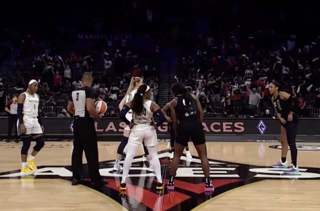 Le match commence vite et bien pour Dallas et notamment pour une Arike Ogunbowale en grande forme et avec la main chaude derrière l’arc. Las Vegas fait le gros dos et laisse passer l’orage mais les dégats sont là : 19 à 29 après 10 minutes de jeu.