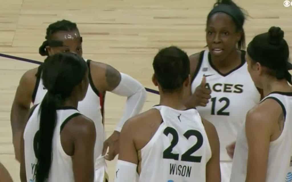 On a beaucoup parlé de Phoenix et du réveil de Brittney Griner mais il ne faudrait pas oublier Las Vegas et particulièrement Jackie Young qui s’offre un match référence en profitant plus d’une fois de sa vitesse face à Megan Walker. Si on ajoute à cela la réussite des grands soirs, la recette est la bonne pour sortir de son chapeau un record en carrière. C’est nécessaire car, ce que la feuille de stat’ ne dit pas, c’est que Brianna Turner fait un travail défensif incroyable sur A’ja Wilson et Liz Cambage quand elle en a l’occasion. A 10 minutes du terme, l’écart est de 2 points : 65 à 67.