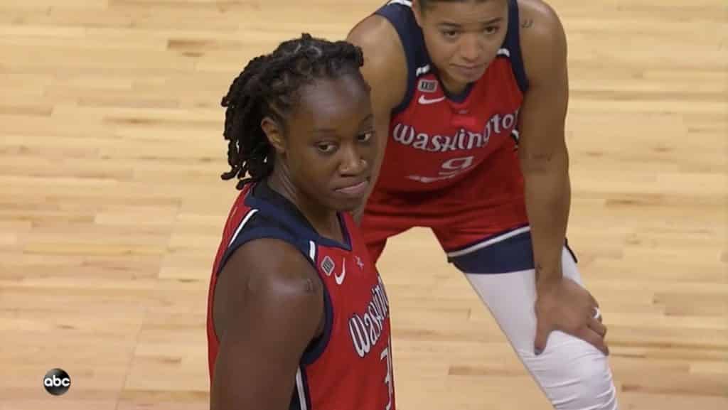 C’est pourtant Washington qui reprend en force un 6-0 malgré une Theresa Plaisance qui prend étonnamment beaucoup de shoots à son compte mais pour assez peu de résultats. Tasha Cloud et Ariel Atkins essaient de motiver les troupes mais ça ne veut décidément pas rentrer. La réussite s’effondre encore un peu plus pour les Mystics : 24,6% à 2 points et 13% à 3 points. Chicago ne doit donc évidemment pas forcer pour mener facilement 57 à 40 à la fin du 3ème quart-temps.