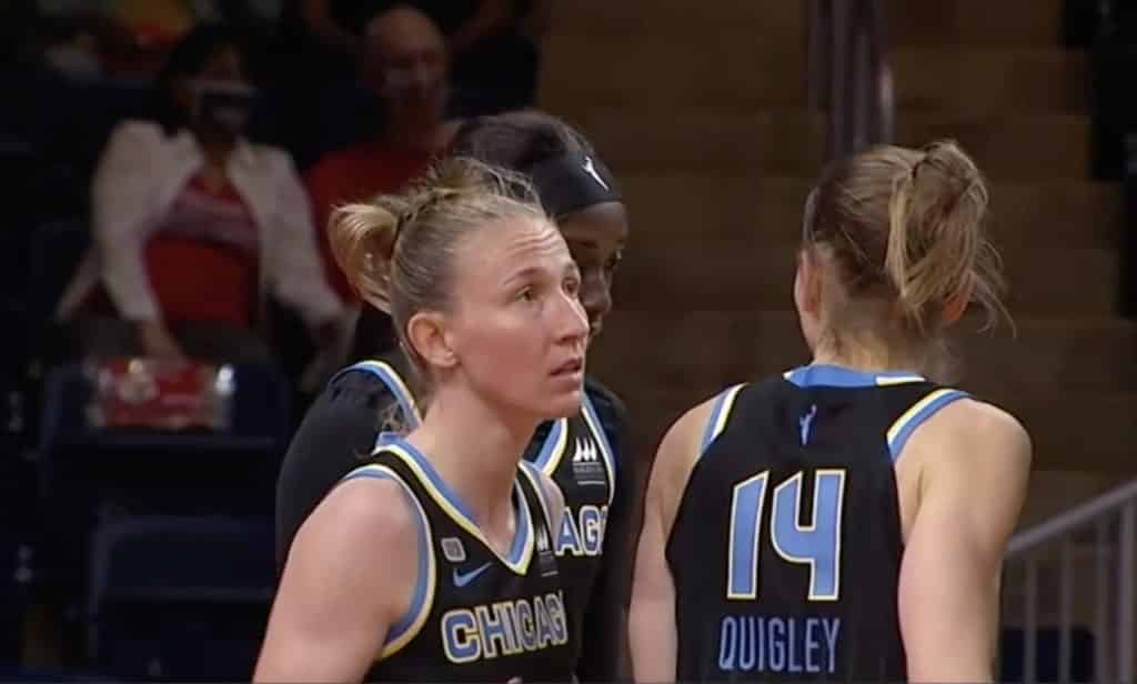 Aucune apparition divine pour les Mystics qui n’arriveront pas à sortir la tête de l’eau. Mais maintenant, Chicago se met un peu au diapason depuis la mi-temps. Ca joue et ça shoote moins bien mais même comme ça, le Sky enfonce le clou et bat sèchement Washington à 70 à 56. Le jeu des Mystics aura été à l’image de la chemise d’Elena…
