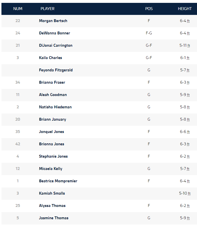 Intersaison très calme pour le Sun à une exception près. La nouvelle nous est parvenue au cours de cette saison européenne. Victime d’une blessure au tendon d’Achille, Alyssa Thomas aura du passer sur la table d’opération et sera absente cette saison. Une tuile pour l’équipe et pour celle qui en était le coeur et les poumons. Côté arrivée, c’est bien évidemment le retour de Jonquel Jones qui est à noter, même si l’on ne peut pas parler d’arrivée en tant que telle. La Draft aura été calme à l’exception peut-être de Dijonai Carrington qui pourrait être une des bonnes pioches si elle trouve la place pour se développer dans l’effectif souvent assez vérouillé de coach Miller.