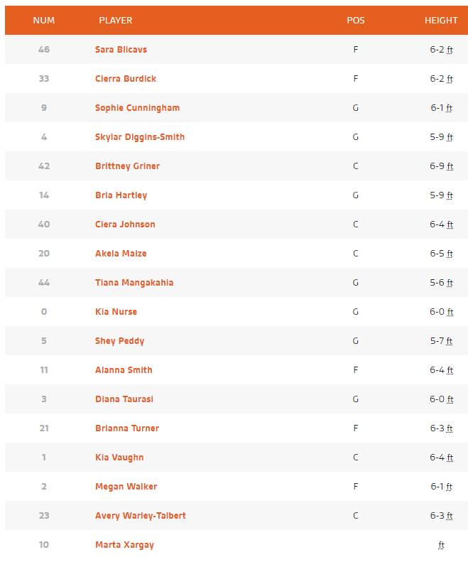 Olivia : Dans tout classement, il y a forcément un perdant, une équipe qui fait les frais de l’ensemble du reste de nos choix, et je ne vais pas mentir, Phoenix est un peu cette équipe au sein de mon classement. L’enthousiasme que m’inspirent la plupart des autres franchises m’a comme qui dirait contrainte à reléguer le Mercury au rang des non-playoffables. Le départ précipité de Brittney Griner la saison dernière, et les problèmes de dos récurrents de Diana Taurasi, n’ont pas aidé non plus, même si je ne suis pas sûre d’assumer à 100% la 9ème place à laquelle je choisis de cantonner Phoenix. Wait and see.
