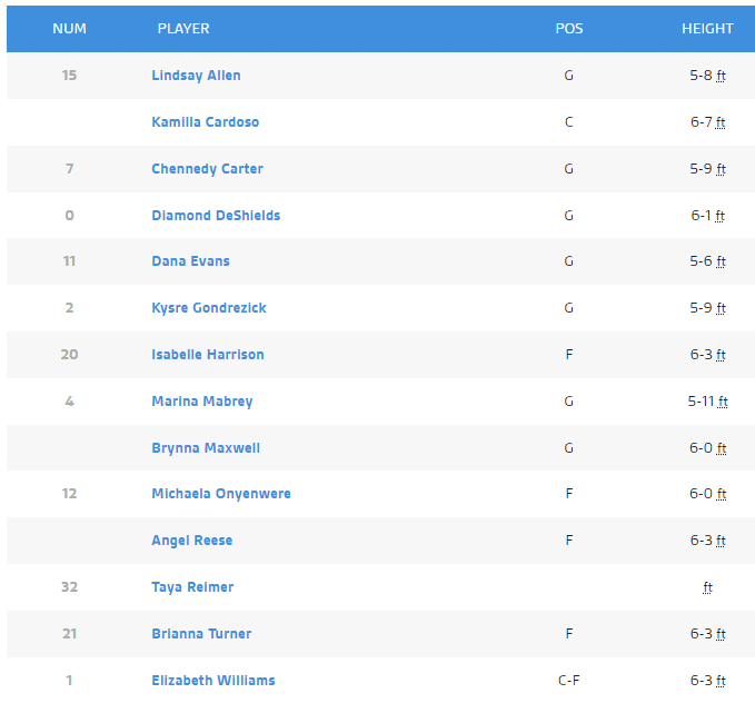 Angel Reese (Draft), Kamilla Cardoso (Draft), Brianna Turner (Phoenix), Diamond DeShields (Dallas), Lindsay Allen (Minnesota), Michaela Onyenwere (Phoenix), Bryna Maxwell (Draft)